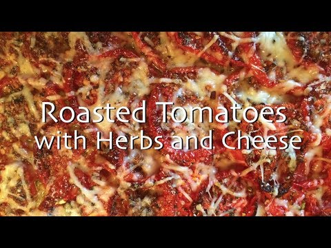 Today’s recipe is Roasted Tomatoes with Herbs and Cheese, on of our very favorite eats and the first time you prepare this mouthful of happiness, you’ve got to be patient because it takes a couple of hours in a low and slow oven for the sugars in the tomatoes to caramelize but it’s a wait well rewarded.